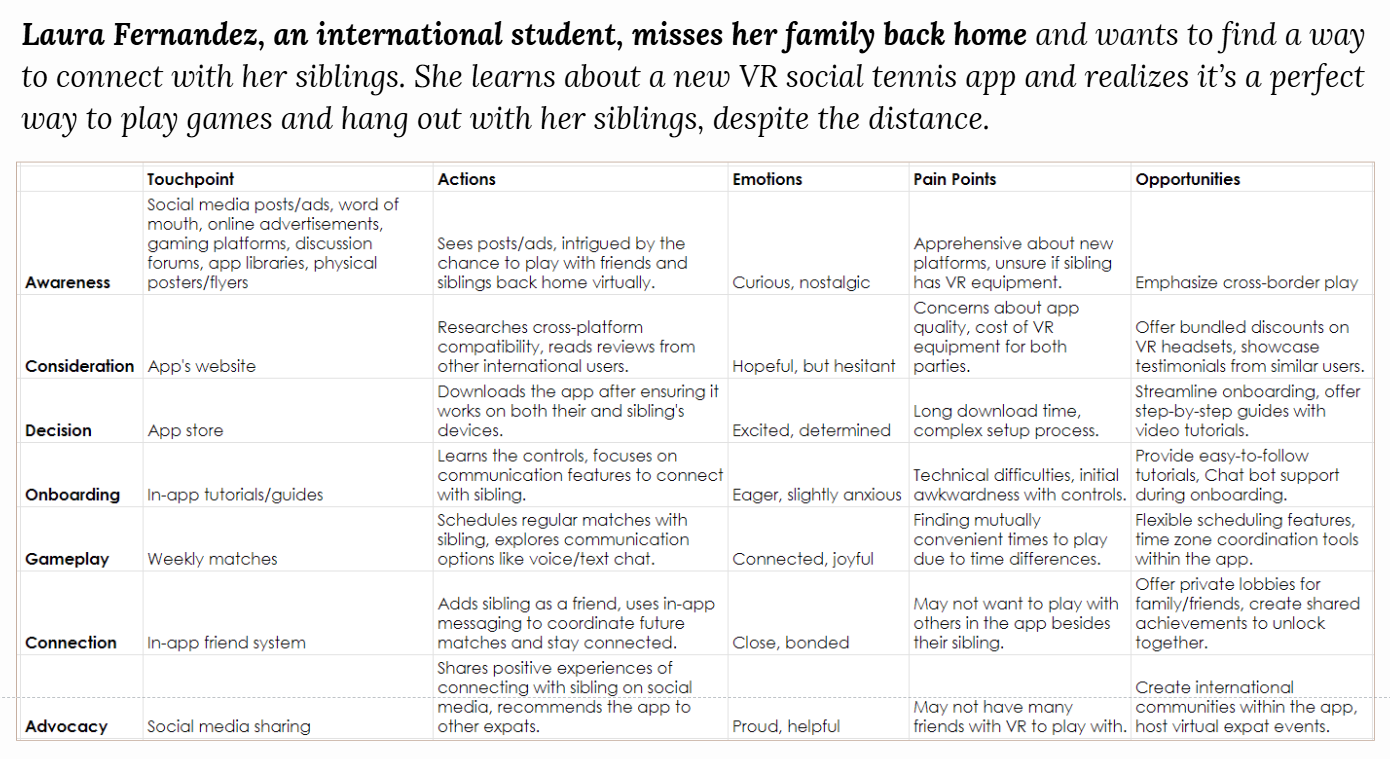 We designed user flows and journey maps to plan smooth sequences for various actions that users may take while using our VR app. Through these, we mapped out emotional states, frustrations, expectations, and opportunities for improvement across the entire VR experience.