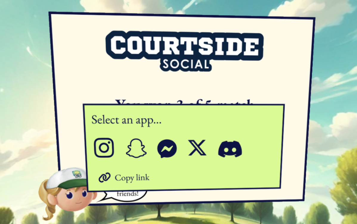 International students face unique challenges in mental health that come with adapting to a new culture and being apart from loved ones. Courtside Social is a social VR tennis experience aimed to foster community building and reduce the isolation often experienced by these students, as well as the wider student body.